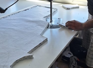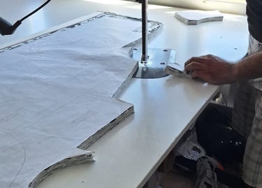 Approved fabrics are prepared and laid for accurate cutting.